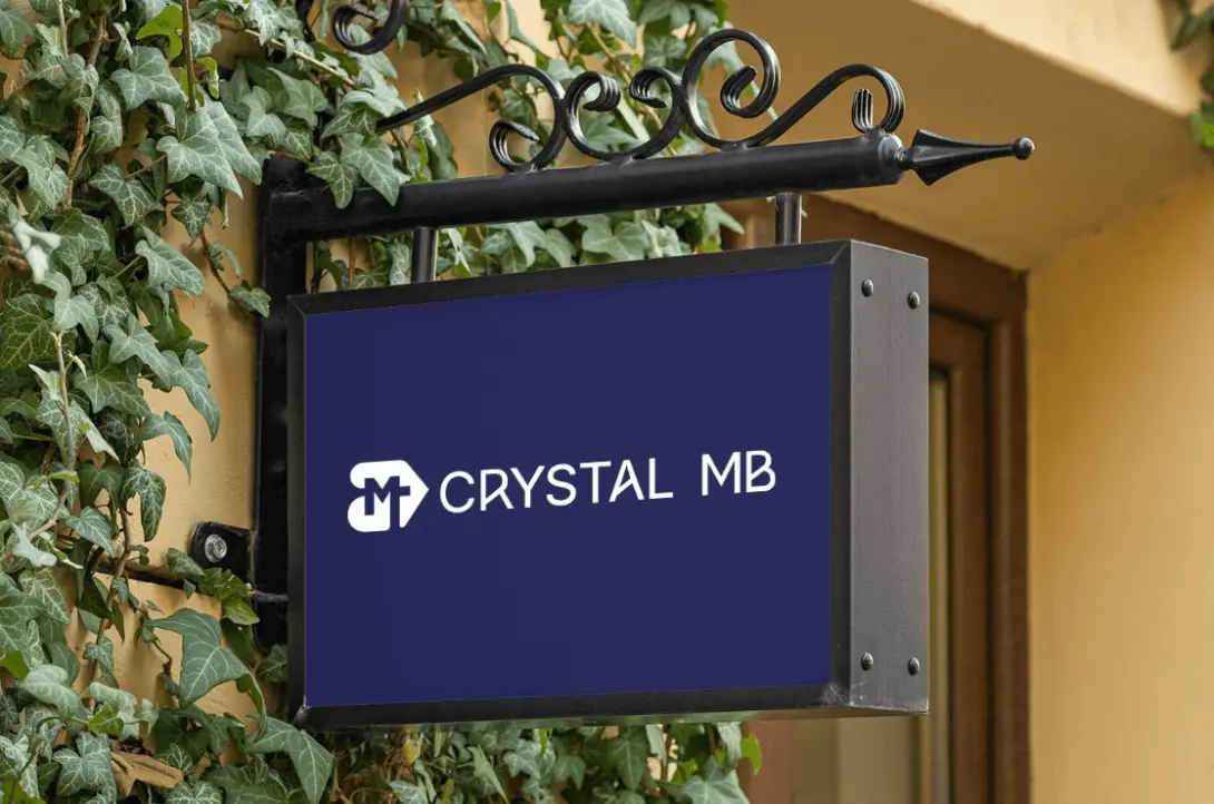 To complement the mark, we crafted a custom wordmark that balances trust with modernity. Following the mark shape and angles, the word Crystal MB appears in a san serif font that customizes the center strokes in the letters 'R', 'A', 'M' and 'B', giving it elegance and authority ensuring a sharp, contemporary finish. Together, these elements sit on one line, reflecting the unity between heritage and innovation.